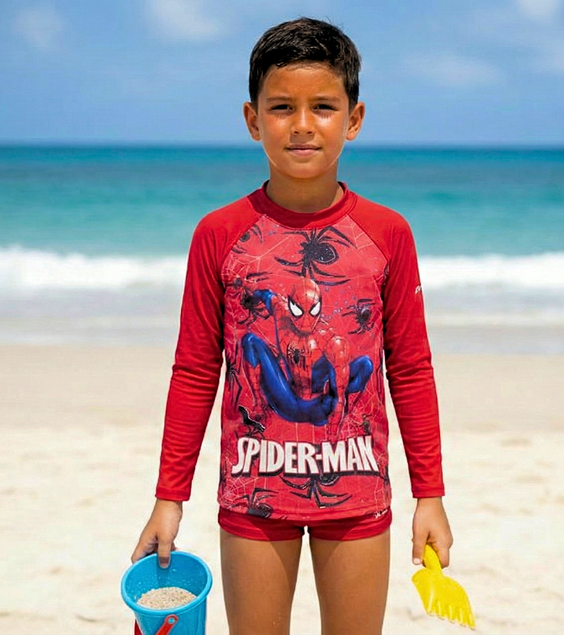Garanta conforto, proteção e estilo para o seu pequeno com este Conjunto Infantil do Homem Aranha, ideal para praia, piscina e atividades ao ar livre!