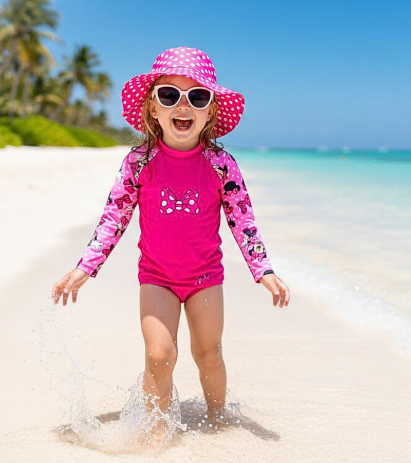 Garanta conforto, proteção e estilo para o seu pequeno com este Conjunto Infantil Minnie, ideal para praia, piscina e atividades ao ar livre!