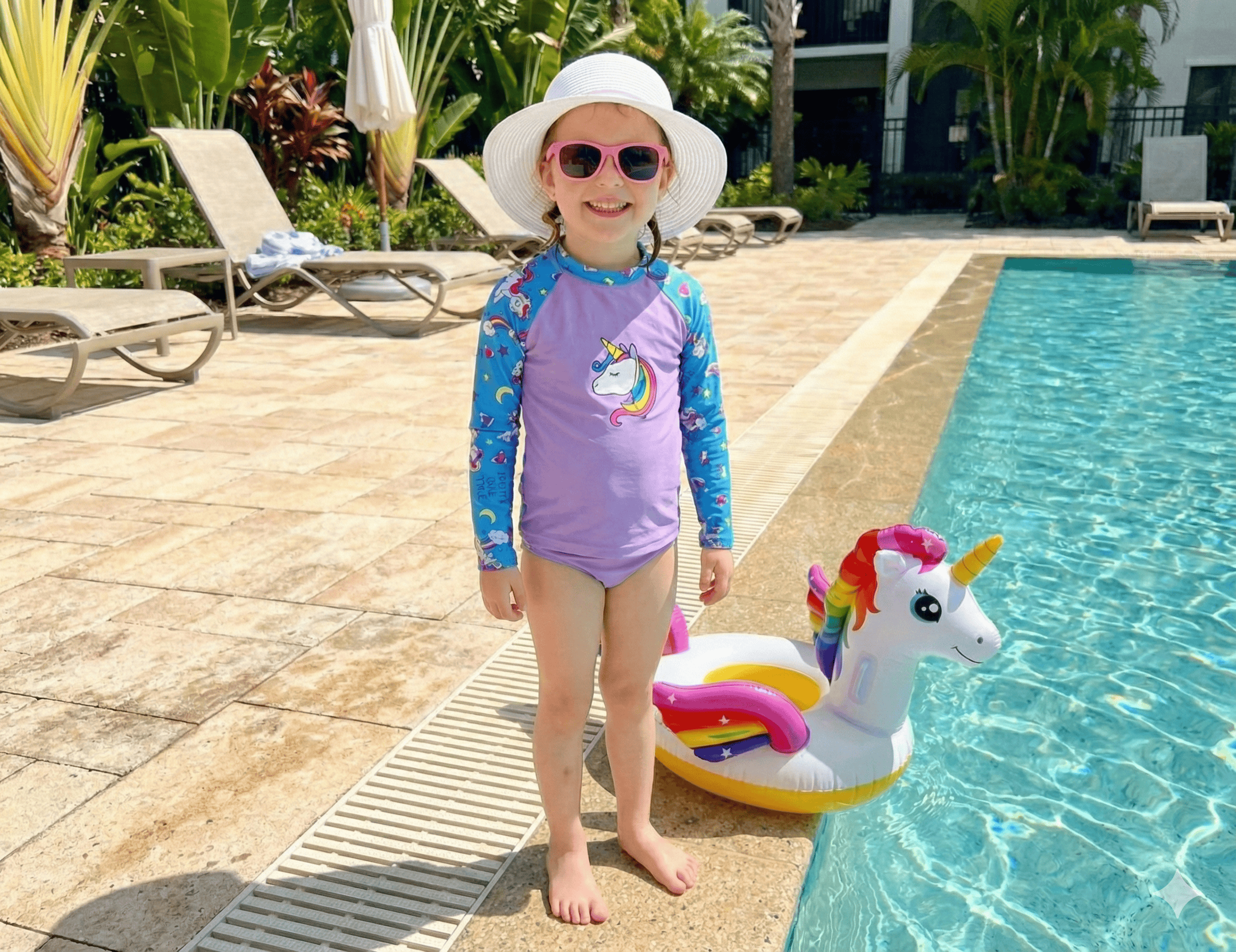 Garanta conforto, proteção e estilo para o seu pequeno com este Conjunto Infantil Unicórnio, ideal para praia, piscina e atividades ao ar livre!
